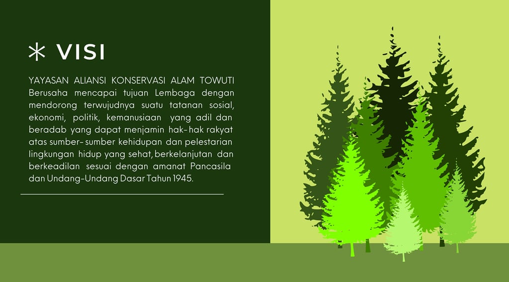 Yayasan Aliansi Konservasi Alam Towuti menghargai hak asasi manusia dan memperjuangkan kelestarian lingkungan hidup sebagai dasar untuk mencapai tujuan berlembaga sesuai dengan nilai – nilai untuk kemanusiaan yaitu :